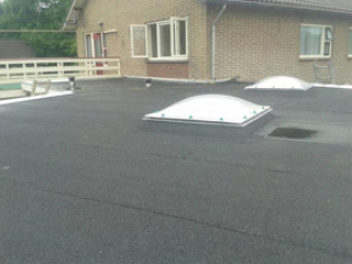 Naast zinkwerk, kunnen wij de dakgoot bekleden met Resitrix. Dat brengen we aan met primer en hete lucht. Er is dan dus géén brandgevaar.